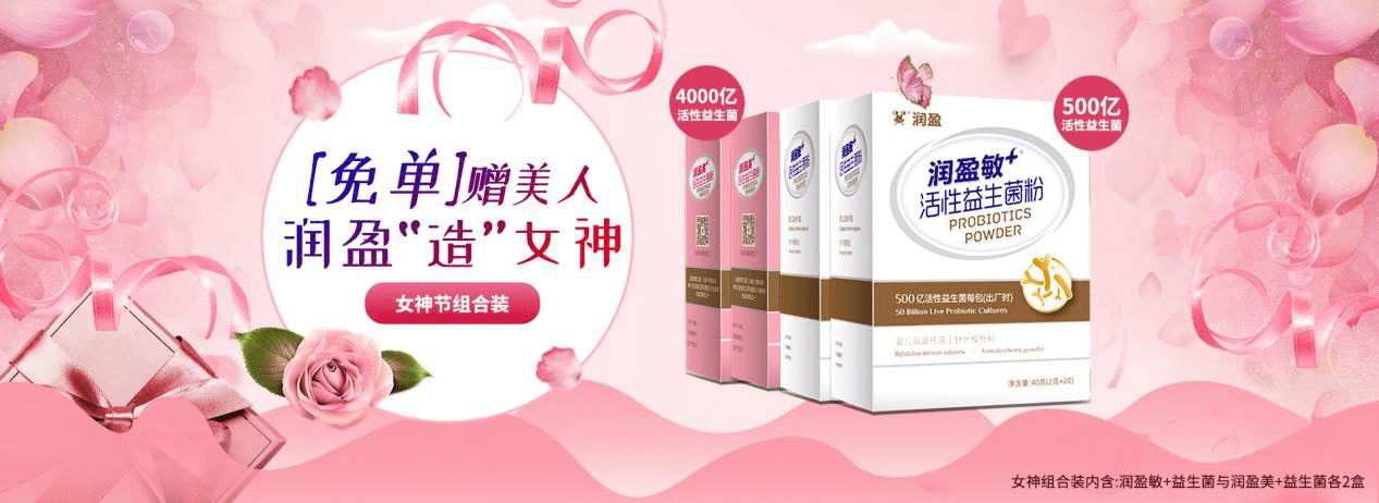 润盈生物“女神节”活动,通过对特殊群体特殊体质的关爱,号召让更多年龄层的人重视“轻体”,了解便秘和盲目使用药品的危害,了解益生菌对肠道菌群的益处。而润盈益生菌产品为小袋独立包装,方便随身携带,随时随地可饮用。此次,正逢“女神节”,润盈特推出「免单」赠美人,润盈“造”女神的福利活动。