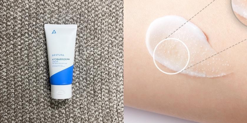 最后是已经卖出400多万份的舒缓柔护润肤霜,它的功效和之前的两款产品很像,都可以强化修护肌肤屏障,改善干燥敏感的皮肤状况,也是很适合敏感皮大干皮的。但是它的质地却非常神奇,虽然是乳状,但是里面却有满满的磨砂小颗粒,在皮肤上推开的体感很奇妙,而且每一颗中都饱含烟酰胺、神经酰胺和脂肪酸,可以有效将神经酰胺的吸收率提升80%。