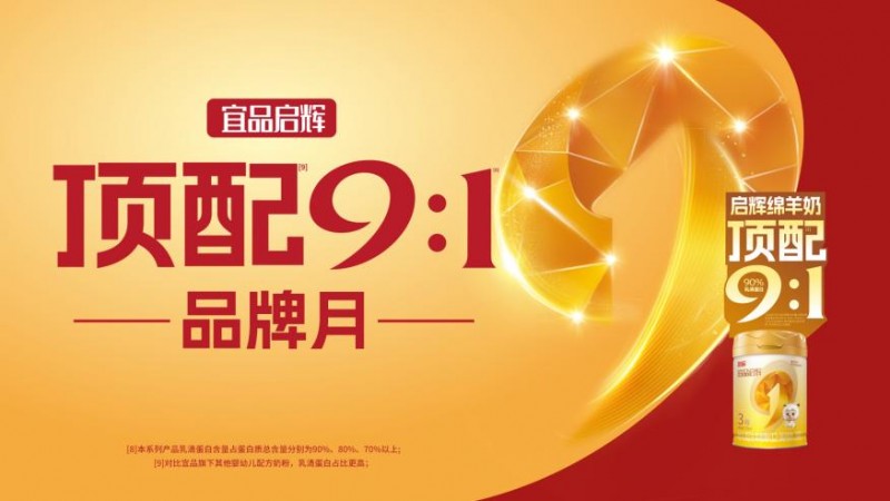 当高乳清蛋白与营养的黄金比例被精准锚定在9:1,终于为宝宝的第一口奶找到了更轻盈的答案,宜品启辉以“9:1”高乳清亲体营养为起点,重温那份用科学喂养回应每一份期待的初心;9月,因「9:1」而独特,宜品启辉以9:1高乳清蛋白黄金配比,定义高端奶粉新范式!以整个9月,铭刻致敬母爱的品牌信仰!以9月1日顶配9:1品牌日,致敬每一位追求卓越的父母!
