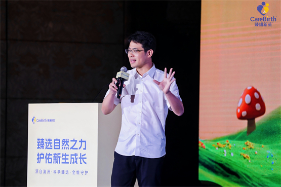 CareBirth臻护新苼始终秉持“科学守护生命之初”的品牌理念。全球营销总经理Andrew Mowbray在现场分享了产品的纯净基因:源自南纬37°黄金奶源带,依托零污染水源、天然牧草与“锁鲜工艺”,从源头保障奶粉的新鲜与活性。活动现场通过震撼的“蓝湖溯源境”真实场景打造,仿佛置身澳洲阳光牧场,亲眼见证奶牛悠然漫步的自然生态。