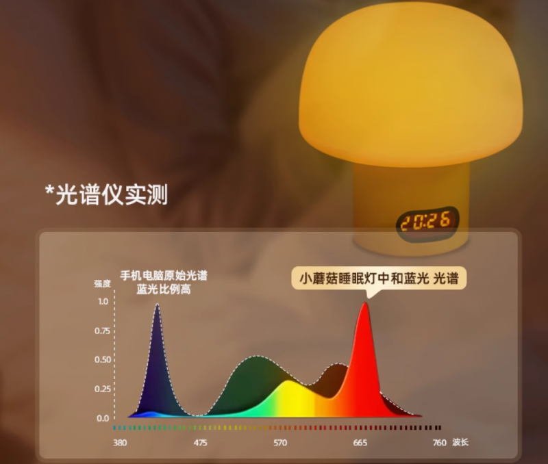 另外,值得一提的是:探秘睡眠灯不但不释放蓝光,而且还能中和手机、电脑、电视等电子产品所释放的蓝光,保护人体节律。