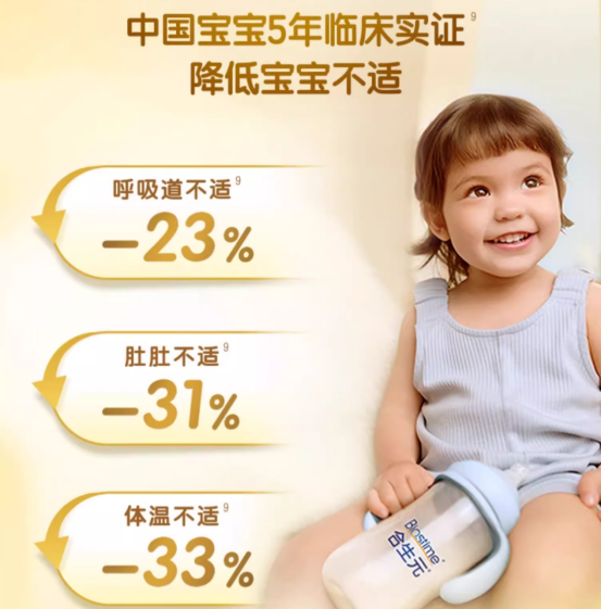 临床验证:联合复旦大学儿科医院、美国加州大学戴维斯分校开展5年临床实证,证明其保护力和吸收力优势
